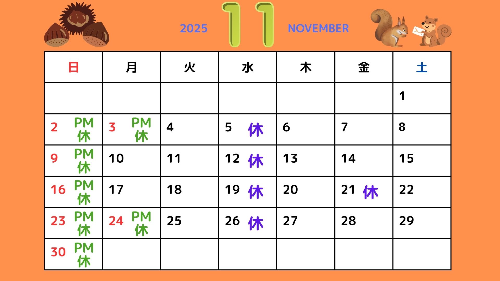 11月は誠に勝手ながら、21日(金)は臨時休診となります